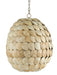 Exploring the shapes that could be achieved with coconut shells inspired the Buko Pendant. The bulbs on the interior give warm light against the cool tone of the bleached coconut shells. This beautiful natural material also highlights the slight texture and imperfections in each shell disc. The chain and hardware on the globe pendant are in a Coco Cream finish.