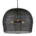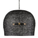 The Piero Black Large Chandelier may appear to be woven from a natural plant material but it is made of iron in a satin black finish to make it an exemplar of the skills that our craftspeople bring to their work. When the black chandelier is illuminated, textural patterns will enliven surrounding surfaces, when it is not, the flowing weave will continue to be a textural accent in a space.