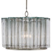 The Bevilacqua Pendant has reflective glass flutes made from recycled bud vases for a shade. Its wrought iron frame is finished in an exquisite silver leaf that compliments the hues in the recycled glass. This silver pendant is one in a variety of fixtures in the Bevilacqua collection.