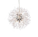 Solace collection features clear crystal beads strung on thin chome wires bursting from the center. The modern pendant is an eye-catching design that embellished with several clear crystals transforming the luminous globe to a work of art. Make a statement or set the mood in your living room, dining room, or foyer with this gorgeous style.