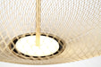 An oblong gold mesh pendant adds a soft velvety texture to the body. The LED lights that shine from the center offers bright illumination despite its size. With up + down lighting, you get direct lighting as well as a soft indirect glow.