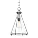 Eldridge is a minimalist cage pendant with maximum style. Light pours through the glass shade and allows the lamp socket within to shine. Available in a conical and a dome shape with Aged Brass, Old Bronze or Polished Nickel finishes, these pendants suspend from gorgeously detailed hook and loop chains.