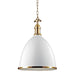Hudson Valley 7718-WAGB One Light Pendant, White/Aged Brass