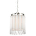 A serene reimagining of a waterfall silhouette, the Tyrell family takes from the grandeur of Parisian design aesthetics and adds unexpected glass techniques. Within the clear glass tubes, a white finish diffuses the light, adding an ethereal beauty to the striking fixtures. While the tiered chandeliers exude drama and decadence, the sconce is equally as special. The frame is finished in Polished Nickel, enhancing the contemporary appeal of Tyrell.