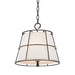 Our Savona family is as handsome as it is unusual. We completely encase the light source in a fine linen shade, then encage the cone in a metal frame, attached with a question-mark hanger loop. A pleasing conical finial of metal extends from the base, finishing the piece off.