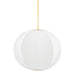 As the name suggests, Jupiter is large in scale and draws the eye upward. An aged brass metal frame is wrapped in white stretch fabric creating a dramatic effect even unlit. When lit, light fills the pendant with a gorgeous glow that bounces off the ringed canopy above. Available in two impressive pendant sizes.