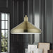 Featuring a clean and crisp modern look, the Geneva 1-light pendant makes a contemporary statement with the smooth cone shape of its antique brass finish exterior. A gleaming shiny white finish on the interior of the metal shade brings a refined touch of style.