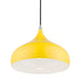 The Amador one light pendant features a modern, minimal look. It is shown in a chic shiny yellow finish shade with a shiny white finish inside and polished chrome finish accents.