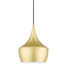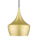 The distinctive shape of this soft gold pendant makes it a wonderful accent for a contemporary home. Inside the shade is a shiny white lining which gives the light a warm tone.