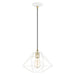 The Geometric collection showcases an angular frame set in a contemporary ambiance for a perfect accenting look. This single light pendant suspends simply, and it`s great solo over focus points or set in pairs or trios over long counter tops and islands. The design is a wonderful way to show off your modern style with ease. It is shown in a white finish with antique brass finish accents.