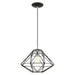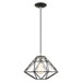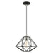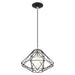 The Geometric collection showcases an angular frame set in a contemporary ambiance for a perfect accenting look. This single light pendant suspends simply, and it`s great solo over focus points or set in pairs or trios over long counter tops and islands. The design is a wonderful way to show off your modern style with ease. It is shown in a black finish with brushed nickel finish accents.