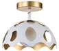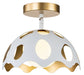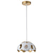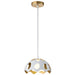 Pebbles 10" Mini Pendant in White finish with Gold interior. The unique cut outs in the design are accentuated by a frosted glass globe that provides an even, clean down light. Adjustable height options allow for use as both a Mini Pendant and also closer to the ceiling as a Semi Flush Mount.