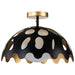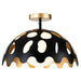 Pebbles 15" Pendant in Black finish with gold interior. The unique cut outs in the design are accentuated by a frosted glass globe that provides an even, clean down light. Adjustable height options allow for use as both a pendant and also closer to the ceiling as a semi flush mount.