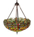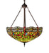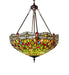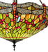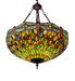Inspired by one of Tiffany Studio's classic Dragonfly lighting masterpiece. Orange dragonflies with glowing Red glass jeweled eyes and Multi-colored filigree wings soar over a Green and Orange background. The stunning inverted shade is accented with Red, Green, Blue and Amber glass jewels. The overall height ranges from 32 to 67 inches as the chain length can be easily adjusted in the field to accommodate your specific lighting application needs. The art glass shade is created using the famous Meyda Tiffany copperfoil construction. The ceiling pendant is enhanced with a Mahogany Bronze finish. UL and cUL listed for dry and damp locations.