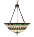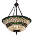 Emerald-colored jewels and Multi colored granite glass accent this stunning Bone Beige art glass reproduction of a famous Louis Comfort Tiffany design. The Tiffany Roman inverted shade is inspired by Italian art and architecture and handcrafted of authentic stained glass using the famous Meyda Tiffany copperfoil construction method. The hardware is finished in a hand applied Mahogany Bronze. The overall height ranges from 30 to 67 inches as the chain length can be easily adjusted in the field to accommodate your specific lighting application needs. UL and cUL listed for dry and damp locations.