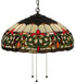 An exquisite Country French lighting design features Red Fleur-de-lis motifs that cradle Leafy Green scrollwork, which is accented with Amber glass jewels on a Beige art glass background. The shade, which was created using Meyda Tiffany?s famous copperfoil construction process, is trimmed in Root Beer Ripple Glass on the bottom while the top border features a Multicolored Dark Blue.