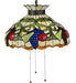 Whet your appetite for color and fine taste. A Meyda Tiffany original classic stained glass design, this delightful basket of ripe luscious three-dimensional fruit features Crimson Apples, Dark Blue Grape jeweled clusters and Chartreuse Pears. The fruit is topped and surrounded with Green Leaves on a Beige background topped with an Antique Brass crown. The hardware features a Mahogany Bronze finished crown trimmed with Saffron swirled designs.