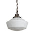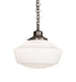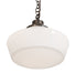 The Revival Schoolhouse glass reflects an authentic classic design. A perfectly formed shade is handcrafted of White Opal Schoolhouse Glass with rich artisanship and style. Originally used in private residences, schools, galleries and libraries, this Schoolhouse electrical reproduction pendant will illuminate a broad range of interiors today. The Brass constructed pendant is enhanced with an Antique Brass finish. The overall height ranges from 20 to 55 inches as the chain length can be adjusted in the field. Handcrafted in our 180,000 square manufacturing facility in Yorkville, New York. Diffuser colors, metal finishes and fixture sizes can be customized. UL and cUL listed for dry and damp locations.