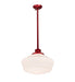 The Revival Schoolhouse glass reflects an authentic classic design. A perfectly formed shade is handcrafted of White Opal Schoolhouse Glass with rich artisanship and style. Originally used in private residences, schools, galleries and libraries, this Schoolhouse electrical reproduction pendant can be cord hung and will illuminate a broad range of interiors today. The pendant is enhanced with a Candy Red finish. Handcrafted by highly skilled artisans in our 180,000 square manufacturing facility in Yorkville, New York. Diffuser colors, metal finishes and fixture sizes can be customized. UL and cUL listed for dry and damp locations.