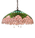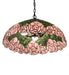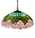 A wreath of full blooming Passion Pink cabbage roses circle this beautiful stained glass shade in a design inspired by the Louis Comfort Tiffany studio. Bronzed Green leaves and Teal Green stems form a pattern against a Blue Opal sky. The shade is created using the famous Meyda Tiffany copperfoil construction. The shade is complemented with a Mahogany Bronze finish. The overall height ranges from 5 to 40 inches as the chain length can be easily adjusted in the field to accommodate your specific lighting application needs. UL and cUL listed for dry and damp locations.
