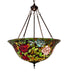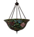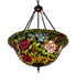 The most beloved of all floral beauties. The Rosebush is beautifully represented in this stunning reproduction of a Tiffany Studio Classic. Petal Pink, Romantic Red, Beautiful Blue and Plum Passion art glass Roses ramble on a maze of Garden Green leaves. The shade is created using the famous Meyda Tiffany copperfoil construction. The delicate domed stained glass shade is paired with a Mahogany Bronze finish. The overall height ranges from 32 to 67 inches as the chain length can be easily adjusted in the field to accommodate your specific lighting application needs. UL and cUL listed for dry and damp locations.