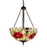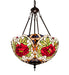 Add beauty and elegance to your home or business with this Tiffany styled art glass pendant. The inverted shade features a Red Rose, framed in Woodland Green leaves and Ivory scrolls that sit on a Lavender and Plum Bronze lace art glass background. This beautiful shade is created using the famous Meyda Tiffany copperfoil construction process. The stunning shade is enhanced with a Mahogany Bronze finish. Overall height ranges from 32 to 67 inches as the chain length can be easily adjusted in the field. UL and cUL listed for dry and damp locations. Each shade is a unique work of art with color variations based on natural ingredients inherent in the glass. Contact us if color matching is critical when ordering multiple items.