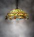 Inspired by one of Tiffany Studio's classic Dragonfly lighting masterpiece. Orange dragonflies with glowing Red jeweled eyes and filigree topped Multi-colored wings dive over a Green and Orange background. The stunning shade is accented with Red, Green and Amber glass jewels. The art glass shade is created using the famous Meyda Tiffany copperfoil construction. This Tiffany Reproduction pendant is enhanced with a warm hand applied Mahogany Bronze finish. Overall height ranges from 15 to 50 inches as the chain length can be easily adjusted in the field to accommodate your specific lighting needs. UL and cUL listed for dry and damp locations.