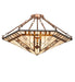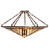 Enchanting southwestern styling and an intriguing Native American design reveal the magic and mystery of tribal symbols in stunning art glass and matching hardware. The hexagonal lighting fixture shade features Sand Beige and Bark Brown granite glass suspended from gently curving arms that repeat the arrowhead and diamond pattern. The shade is created with the famous Meyda Tiffany copperfoil construction. The hardware is finished in a warm Mahogany Bronze finish. The Sonoma Semi-Flushmount is included in our American-designed, handcrafted Southwest Lighting Collection. UL & cUL listed for dry and damp locations. Each shade is a unique work of art with color variations based on natural ingredients inherent in the glass. Please contact us if color matching is critical when ordering multiple items.