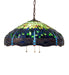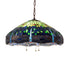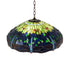 Our version of the most beloved Tiffany Studios stained glass dragonfly design is modeled after the original hanging head dragonfly. Diving Blue dragonflies with glowing Red jeweled eyes and delicate metal filigree wings circle over hand cut and copper foiled pieces of Lakeside Blue and Pond Green glass that represent rippling water. Green and Red jewels accent the background. Overall height ranges from 15 to 150 inches as the chain can be easily adjusted in the field. This lovely shade is created using the famous Meyda Tiffany copperfoil construction and enhanced with a Mahogany Bronze finished lamp base. Each shade is a unique work of art with color variations based on natural ingredients inherent in the glass. Contact us if color matching is critical when ordering multiple items.