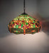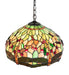 This beloved lighting design is modeled after the original hanging-head dragonfly from Tiffany Studios. Diving Art Glass Dragonflies with glowing jeweled eyes and delicate metal filigree wings circle over hand-cut and copper foiled pieces of Pond Green and Pastel colored glass representing rippling water. This lovely shade is created using the famous Meyda Tiffany copperfoil construction and enhanced with Mahogany Bronze finished hardware. The fixture is inspired by Dragonflies found in renowned rose gardens in the New York Botanical Garden in Bronx Park, New York City, to the White House in Washington, D.C. The ceiling pendant is ideal for placement in hallways and dining areas to create a beautiful design statement. The Tiffany Hanginghead Dragonfly Pendant is included in our Tiffany Reproduction Collection. UL and cUL listed for dry and damp locations. Each shade is a unique work of art with color variations based on natural ingredients inherent in the glass.