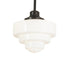 Restore the past with this handsome pendant featuring a beautifully formed, 3-tiered White Opal Schoolhouse Glass shade. The fixture is complemented with a Craftsman Brown finish. This vintage-style lighting fixture features a refined yet consistent, distinctive design that originated in traditional schoolhouses and public buildings in the early 1920s. The pendant is perfect for entryways and lobbies in structures from Wells, Maine, to Columbia County, New York, to Canaan, Pennsylvania. The Revival Schoolhouse Tiered Globe Pendant is included in our American-designed, handcrafted Mid-Century Modern Collection. The fixture is UL & cUL listed for dry and damp locations.
