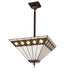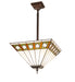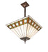 Clean lines and geometric shapes are the hallmarks of the Mission style. This sleek Bisque Beige stained glass shade features a simple, elegant Diamond pattern in Beige accented with Amber, Jade, and Peridot borders. This stunning shade is created with the famous Meyda Tiffany copperfoil construction technique and complemented with elegant cast metal hardware featured in a Mahogany Bronze finish. The ceiling fixture is ideal for illuminating dining areas and other residential, restaurant, and hotel spaces. The Diamond Band Mission Inverted Pendant is included in our American-designed, handcrafted Mission Lighting Collection. UL and cUL listed for dry and damp locations. Each shade is a unique work of art with color variations based on natural ingredients inherent in the glass.