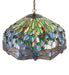 This beloved lighting design is modeled after the original hanging head dragonfly from Tiffany Studios. Diving Blue Dragonflies with glowing jeweled eyes and delicate metal filigree wings circle over hand-cut and copperfoiled pieces of Lakeside Blue and Pond Green glass representing rippling water. This lovely shade is created using the famous Meyda Tiffany copperfoil construction and is enhanced with an Antique Brass finish. The overall height ranges from 16 to 39 inches, as the chain can be easily adjusted in the field to meet your exact lighting requirements. The Tiffany Hanginghead Dragonfly Pendant is included in our American-designed, handcrafted Tiffany Reproduction Collection. It is UL and cUL listed for dry and damp locations. Each shade is a unique work of art with color variations based on natural ingredients inherent in the glass.