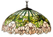 A wreath of full blooming Passion Pink cabbage roses circle this beautiful stained glass shade in a design inspired by the Louis Comfort Tiffany studio. Bronzed Green leaves and stems form a pattern against an Opal sky in this lovely Mahogany Bronze finished pendant. Custom options include special colors, styles, sizes and dimmable lamping options. This pendant is UL and cUL listed for damp and dry locations.