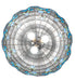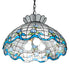 Grace your home with this elegant pendant featuring an exquisitely crowned shade. A gridwork of Winter-kissed Icy Clear Fern Glass is adorned with a Wedgewood Blue border of swirling ribbons and Blue Waterglass rosebuds which are complemented with Green Leaf accents. The shade is created using the famous Meyda Tiffany copperfoil construction. This pendant is enhanced with a Mahogany Bronze finish. The overall height ranges from 17 to 57 inches as the chain can be adjusted in the field to meet your specific lighting needs. UL and cUL listed for damp and dry locations.