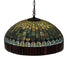 In the early 20th century, Tiffany Studios used artful mastery to develop the look of woven fabric with a fringed skirt out of art glass. We have taken that concept one step further. Multi-hued Amber Plum fringe crowns a dome of art glass brickwork intertwined with hues of Emerald, Cobalt, Heather, Navy, Teal and Amber. The art glass shade is created using the famous Meyda Tiffany copper foil construction process and is enhanced with hardware finished in Mahogany Bronze. The overall height ranges from 16 to 56 inches as the chain length can be easily adjusted in the field to meet your specific lighting needs. UL and cUL listed for damp and dry locations.