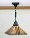 With their love of geometric forms, architects of the Prairie School interpret organic objects into simplified lines. The Meyda Tiffany Prairie Corn pendant shade has rows of Chili Red and Wheat kernels and stalks of Bronzed Jade against a Maize Gold background. The stained glass shade is paired with simple Mission style hardware in a Mahogany Bronze finish.