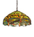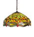 Inspired by one of Tiffany Studio's classic Dragonfly lighting masterpiece. Orange dragonflies with glowing Red jeweled eyes and filigree topped Multi-colored wings dive over a Green and Orange background. The stunning shade is accented with Red, Green and Amber glass jewels. The art glass shade is created using the famous Meyda Tiffany copperfoil construction. This Tiffany Reproduction pendant is enhanced with a warm hand applied Mahogany Bronze finish. Overall height ranges from 15 to 50 inches as the chain length can be easily adjusted in the field to accommodate your specific lighting needs. UL and cUL listed for dry and damp locations.