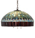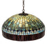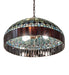 In the early 20th century, Tiffany Studios used artful mastery to develop the look of woven fabric with a fringed skirt out of glass. Meyda Tiffany has taken that concept one step further and turned it upside down. Multi-hued Plum fringe suspends an inverted dome brickwork intertwined with shades of Emerald, Cobalt, Heather, Xanadu, Azure and Saffron art glass. The art glass shade is created using the famous Meyda Tiffany copperfoil construction process and is enhanced with hardware finished in Mahogany Bronze. Overall height ranges from 15 to 50 inches as the chain length can be easily adjusted in the field to accommodate your specific lighting needs. UL and cUL listed for dry and damp locations.