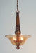 A return to traditional American hand carved elegance, this inverted pendant with fluted and leaf carved column and accents boasts a pale amber glass shade over candle arms. The Portsmouth Cherry finish with Gold Washed accents complete the New World ambience.