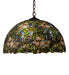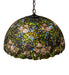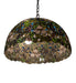 Nature abounds in this designer-styled stained glass shade. Glistening Red Glass Berries, Ivory Trilliums, and clusters of Violets with Woodland Green leaves offer protection on the forest floor to the delicate Ivory Trillium, while Amber vines twist and turn through a background of Sky Blue and Clear Seeded glass. Clear jewels glisten throughout the shade like the first dew drops of the day. This exquisite variegated shade is created with nearly 3,000 pieces of hand-cut stained glass using the famous Meyda Tiffany copperfoil construction process. The hardware is hand-finished in Mahogany Bronze. The overall height of the pendant ranges from 15 to 50 inches, as the chain length can be easily adjusted in the field to accommodate your specific lighting application needs. The Trillium & Violet Pendant is included in our American-designed, handcrafted Stained Glass Lighting Collection. UL and cUL listed for dry and damp locations. Each shade is a unique work of art with color variations based on natural ingredients inherent in the glass. Contact us if color matching is critical when ordering multiple items.