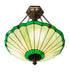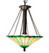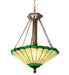 A classic stained glass design to complement any decorative scheme, from traditional and contemporary, to eclectic or nostalgic. This stunning Caprice Pendant features an appealing Avocado Green stained glass shade with Green trim and edged in Radiant Amber stained glass jewels. The inverted shade is created using the famous Meyda Tiffany construction process. The hardware is finished in a handsome Mahogany Bronze. UL and cUL listed for dry and damp locations. Each shade is a unique work of art with color variations based on natural ingredients inherent in the glass. Contact us if color matching is critical when ordering multiple items.