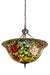 The most beloved of all flowers, the rose, is beautifully represented in this Meyda reproduction of a Tiffany Studio classic. Petal Pink, Romantic Red and Plum Passion art glass roses ramble on a maze of Garden Green leaves. The delicate domed stained glass shade is paired with a graceful, hand finished Mahogany Bronze inverted pendant fixture.