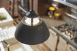 Light spills out onto Carbon's domed metal shade, from a tapered glass diffuser. Inside surface of metal shade has gloss white finish for maximum illuminations. This mini-pendant is finished in a Graphite finish.