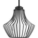 The one-light pendant from the Finn collection takes a new perspective on an open cage design. The beautifully graphic frame in a matte Black finish wraps around an etched white glass shade creating a focal aperture for a single bulb. Black finish.
