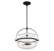 The Savoy House Denmar 4-light convertible semi-flush mount perfectly illuminates a wide variety of spaces with its classic style. It also has superior versatility because it can be used as a hanging pendant or ceiling light! The shade and diffuser of crackled glass bring eye-catching texture while the Matte Black finish adds boldness. Denmar is 18" in width and has an adjustable height ranging from 19" to 73". Comes with four 12" downrods and one 6" downrod. Uses four candelabra size bulbs of up to 60 watts per bulb. Bulbs not included.