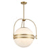 Become mesmerized by the ball of swirling, eye-catching strie glass in the Savoy House Thornhill 3-light pendant. The glass orb is accentuated by elegant picket-shaped detailing and slender, curving arms, all finished in Warm Brass. Thornhill is 20" in width and has an adjustable height ranging from 21.5" to 75.5". Comes with four 12" downrods and one 6" downrod. Uses three candelabra size bulbs of up to 60 watts per bulb. Bulbs not included.
