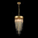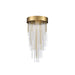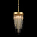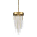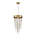 4-Light 12" Round Waterfall Crystal Pendant Light with Multi-Sized Clear Curved Crystal Stems combined with Solid Metal Stems. Refined Metal Details with our Premium Aged Brass Finish and Flush Mount Convertible.