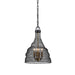 4-Light 12" Metal Shade Pendant with Dark Bronze Finished Chain Linked Conical Metal Shade and Details.