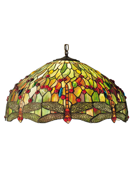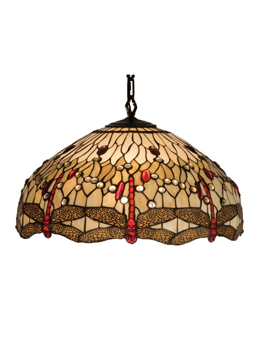 Meyda's reproduction of a masterpiece, Tiffany Studio's most beloved stained glass Dragonfly design. Soaring dragonflies with glowing Scarlet jewel...
